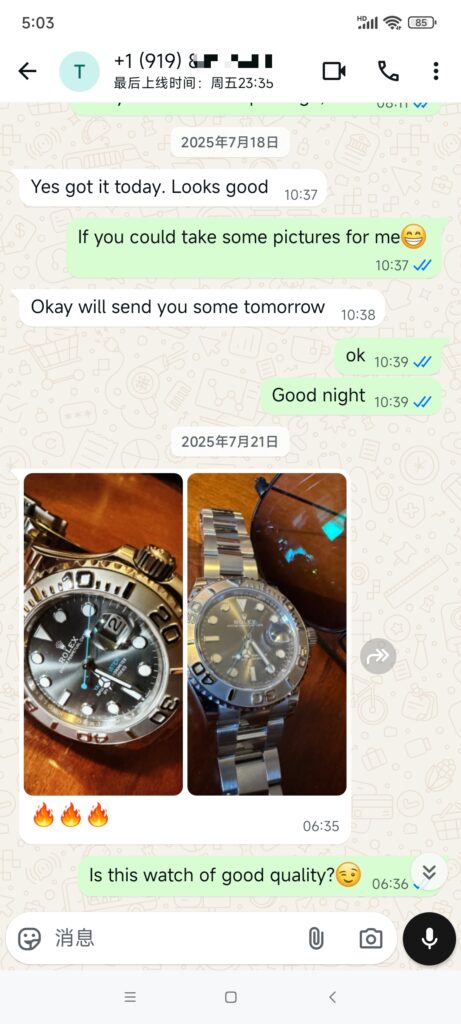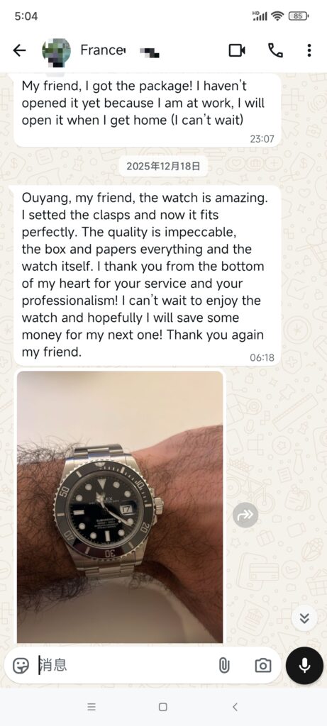 3.A professional 360-degree quality inspection is conducted before shipment, and video verification is available. Check the Rolex serial number at the 6 o’clock position; each Rolex has a unique serial number, and the serial number on the inspected Rolex will match the received item.